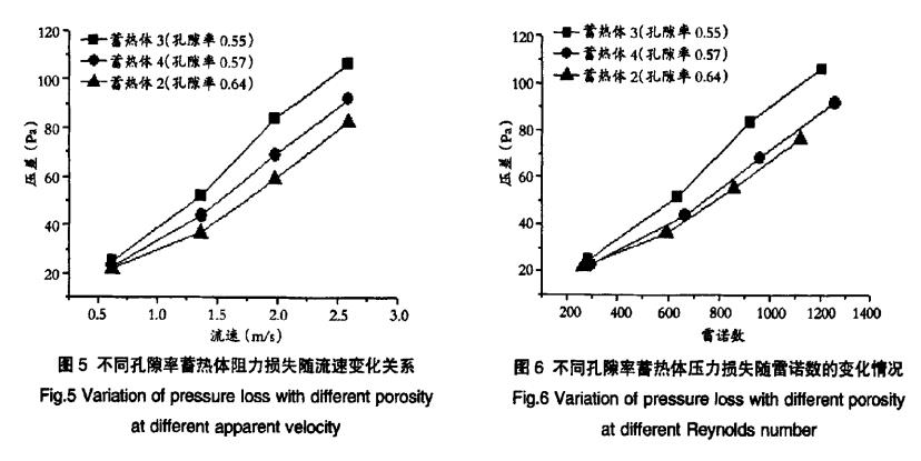 (2)蓄熱體阻力損失隨孔隙率增加而減小。在蓄熱體孔隙率—定時,蓄熱體阻力損失隨雷諾數(shù)增加而。